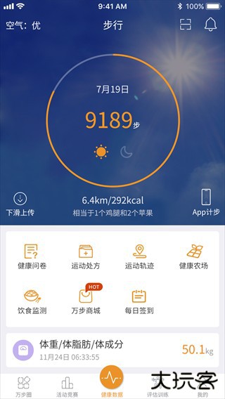 万步健康安卓版软件里,让用户可以轻松记录每日步数,同时同步心率、血压、血糖、体脂等多项健康数据,打造属于自己的健康档案。软件还鼓励用户积极参与线上健走挑战,支持团队比拼、排行查看,让健走不再孤单。