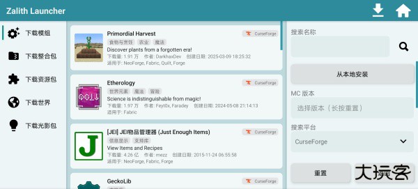 6、搜索喜欢的模组下载即可,或者从本地安装也行