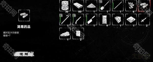 1、各种特殊药品:探索翻垃圾获得,医院地图比较多,布洛芬治疗发烧,胃药治疗胃炎,云南白药治扭伤,安定治失眠,抗生素治各种感染。