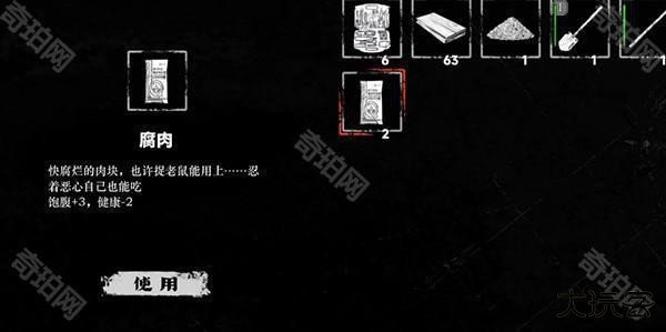 4、腐肉:探索翻垃圾获得,放到捕兽夹获得生肉。