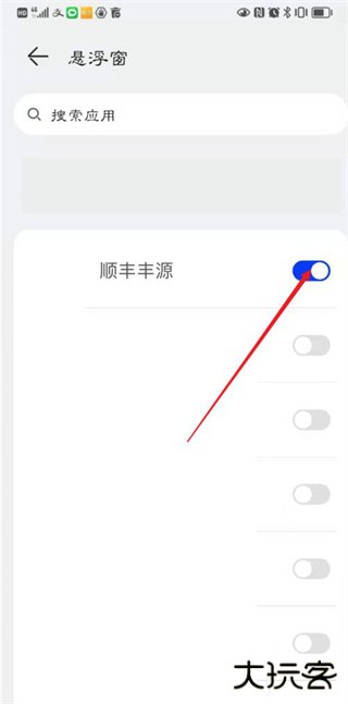 4、在应用列表找到顺丰小哥,也可以使用搜索查找,然后点击右边按钮,打开权限即可。
