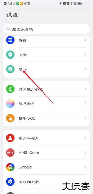 1、在手机主屏幕打开设置,向下滑,然后点击【隐私】;
