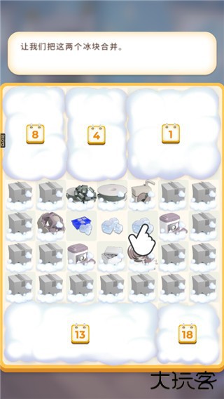 3.进入游戏支线剧情,玩家使用左右移动合并相同的物品。