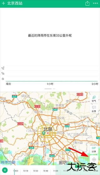 1、软件的使用方法非常简单,首次打开软件,系统会自动完成定位,当然您也可以手动选择地点