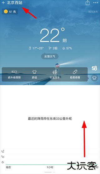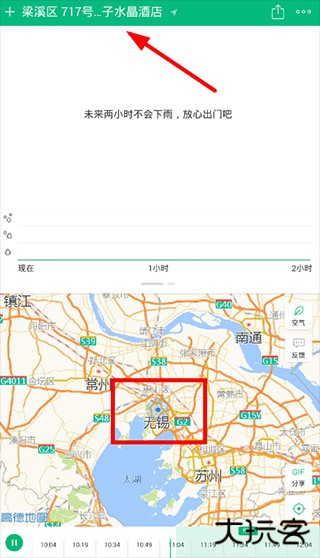 3、如此一来,大家可以从左上角看到自己所在的具体位置,同时也能了解到所在地附近的天气情况,非常的方便实用!