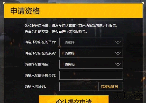 2、体验服资格申请开放之后,进入官方的抢号页面后,请大家在【申请资格】提交申请,申请成功后,才能拥有抢号的资格