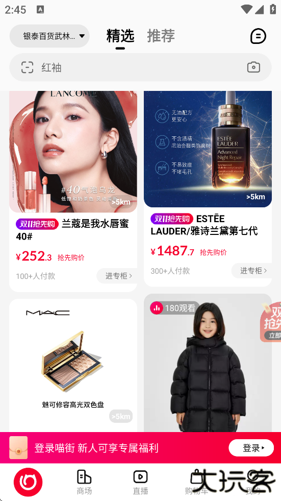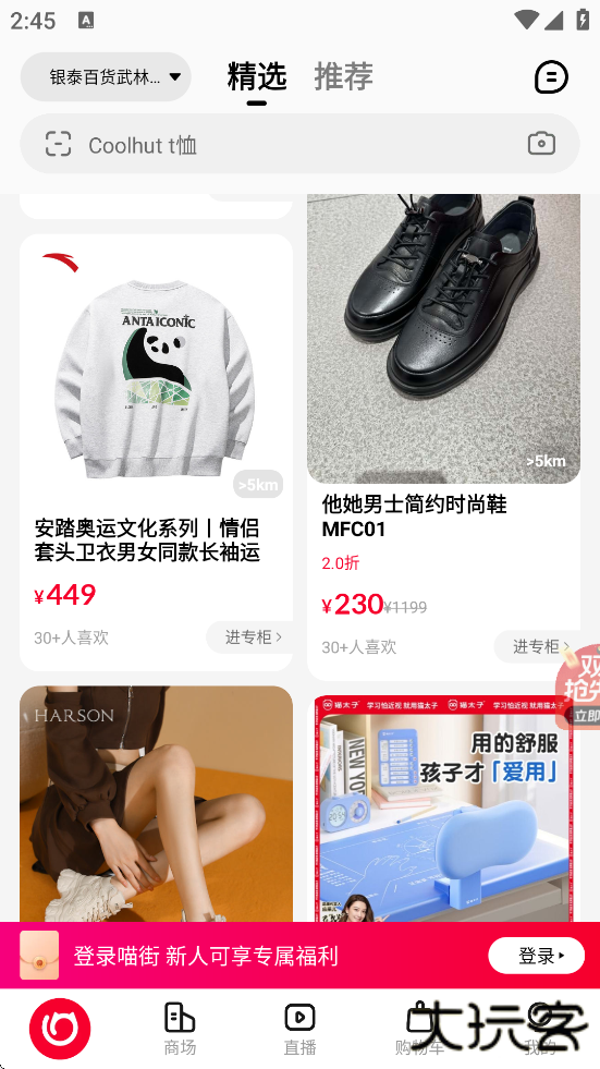 3、场景社交社区:通过“喵步”分享商场新鲜事,“喵喵”工具与导购或好友即时沟通。