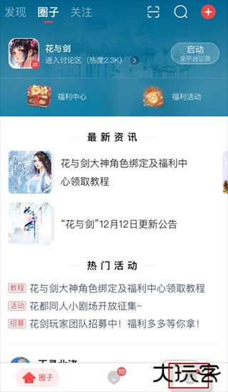 1、进入网易大神APP,点击“圈子”,滑动页面找到想要启动的游戏
