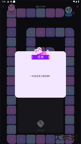 2、点击摇骰子,掷出多少点,角色代表的小人就前进几步,其实胜负不重要啦,重要的是路途中的各种任务