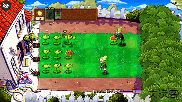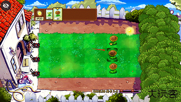 3、由于该版本僵尸出现的速度很快,在加上获得的植物不多的情况下,可以先将向日葵种植在最前面来拖延一点时间