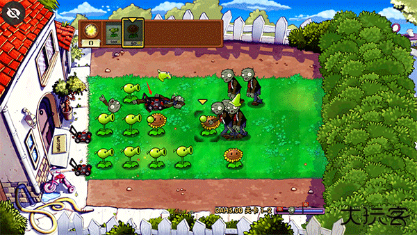 4、然后在后排种植大量的豌豆射手来攻击僵尸