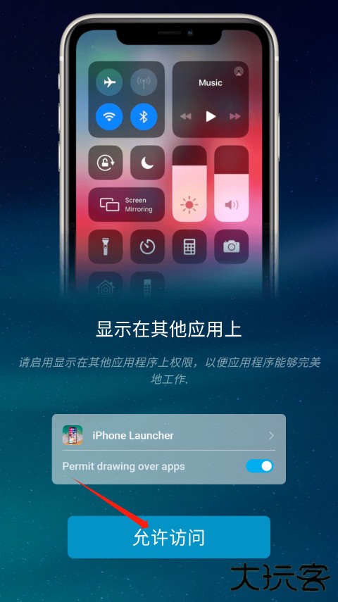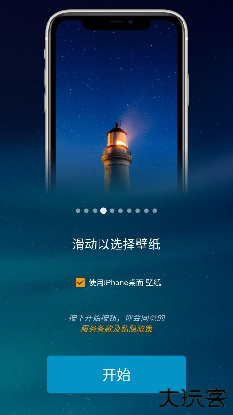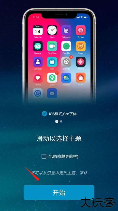 1、在本站下载安装iPhone Launcher软件,打开进入滑动选择壁纸,点击开始。