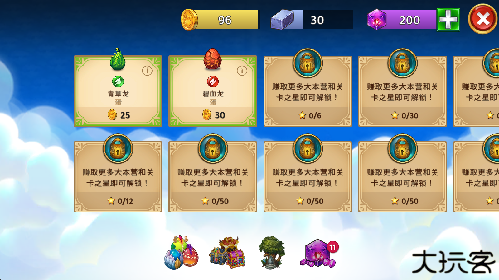5、另外,随着关卡的推进,我们也可以在商店中去购买更多种类的龙蛋,孵化出更多全新的小龙。