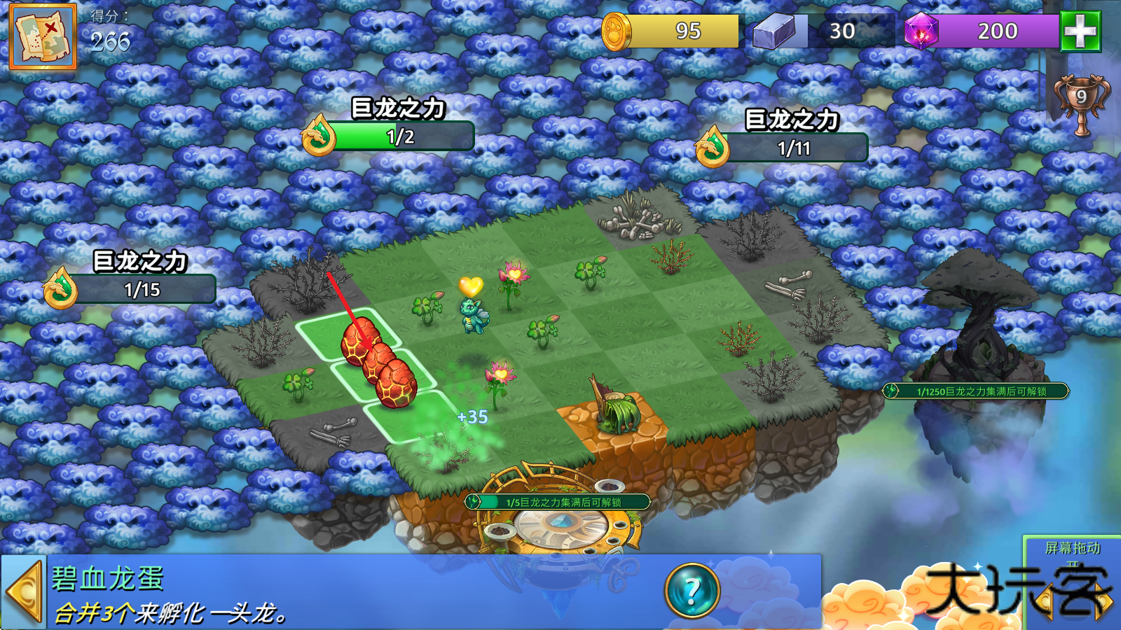 更高级别的龙通常更快,能够做更多的工作,并且能获得更多龙之力来解锁土地。所以合并3条龙来获得一个更高级的龙是必须的。记得要合并5个龙蛋,因为龙蛋是越买越贵的。
