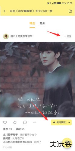 3、只需点击“使用模板”即可轻松套用,想继续关注这个模板的作者,可以点击右上角的“关注”按钮。