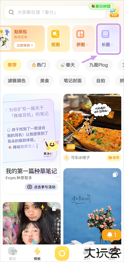 1、在黄油相机的模板界面,点击上方的“长图”选项。