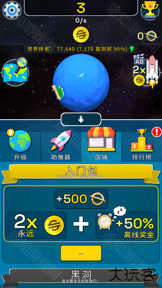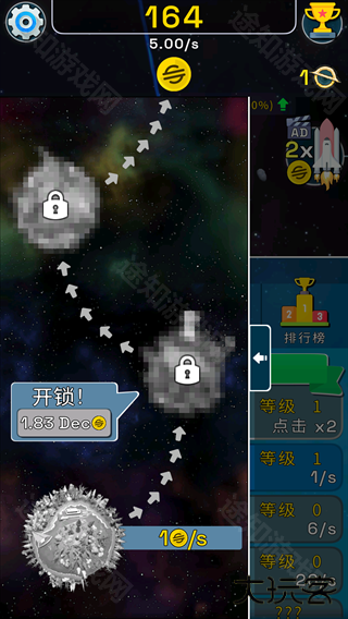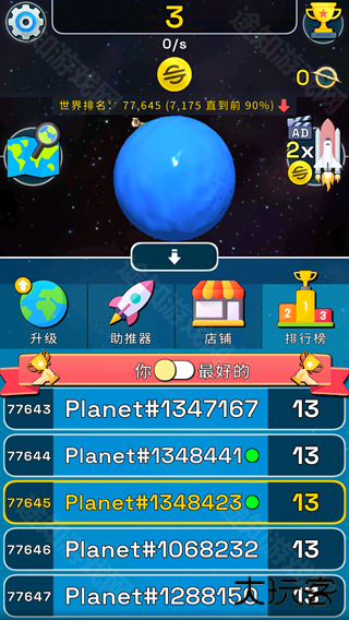 2、第一栏为升级栏,在此玩家可以使用金币进化星球,每次升级都可以让你的星球成长,其中每种进化需要花费的金币都不一样,进化的等级越高则耗费的金币则越多,
