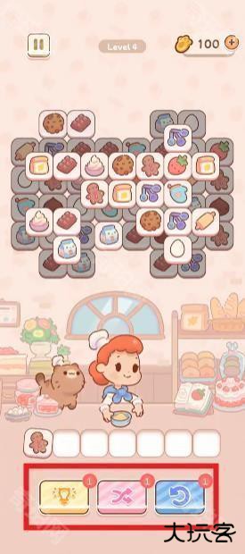 4、三消+烘焙玩法。点击堆叠三种相同的成分来消除它们,制作甜点和升级食谱。