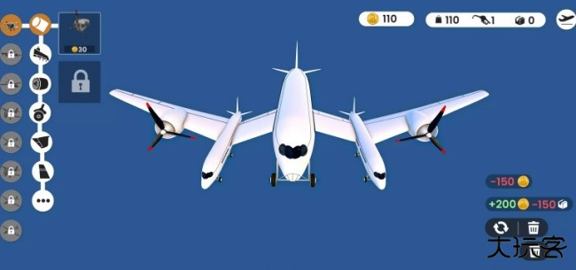 进入组装界面,可选择不同的飞机部件(如引擎、机翼等)进行拼装,界面左侧显示可解锁的部件,右上角显示金币等资源,通过合理组装打造性能各异的飞机。