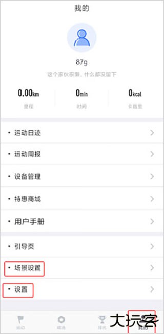 1、用户在我的页面中可以看到两个设置内容,分别是场景设置和设置功能