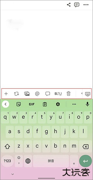 2、来到编辑界面之后,先输入标题内容之后点击下方的文本区域,可以看到输入法上方有工具栏弹出;