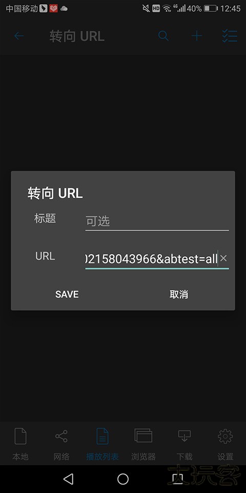 2、在弹出的输入窗口中,将所需下载视频的链接复制到URL处,并点击【SAVE】