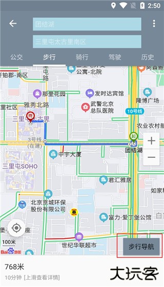 1、街景步行地图实时进行三维和二维的切换,便于在步行的时候更加知道自己的坐标方向。