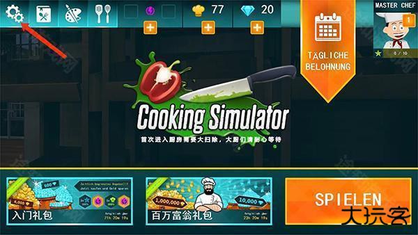 1、打开Cooking Simulator游戏,进入游戏主界面,选择左上角【齿轮】图标,