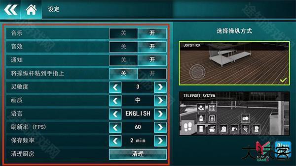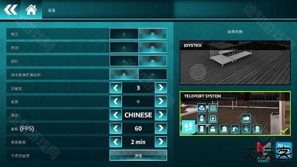 4、点击左上角的设置进入以下界面,这里可以对游戏画质、音乐、操作控制;