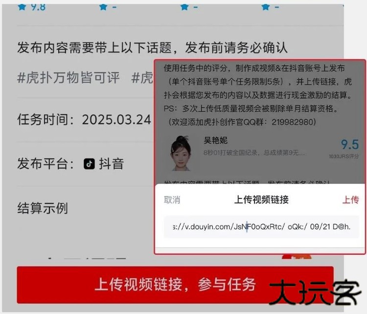 3、根据任务里的要求,在抖音发布虎扑相关内容