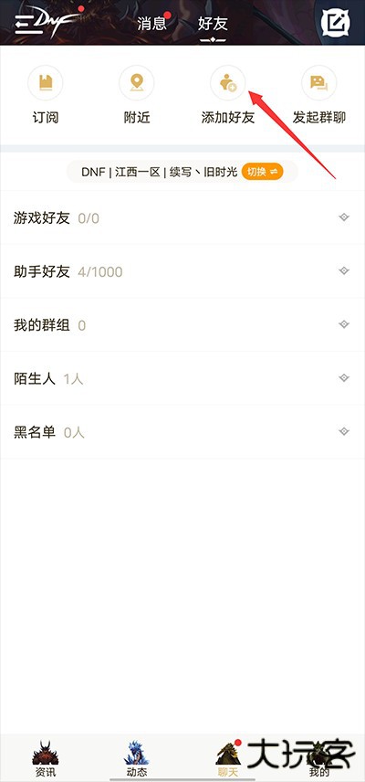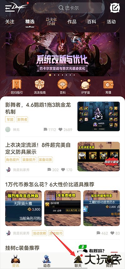 1、打开DNF助手APP,点击底部的“聊天”界面