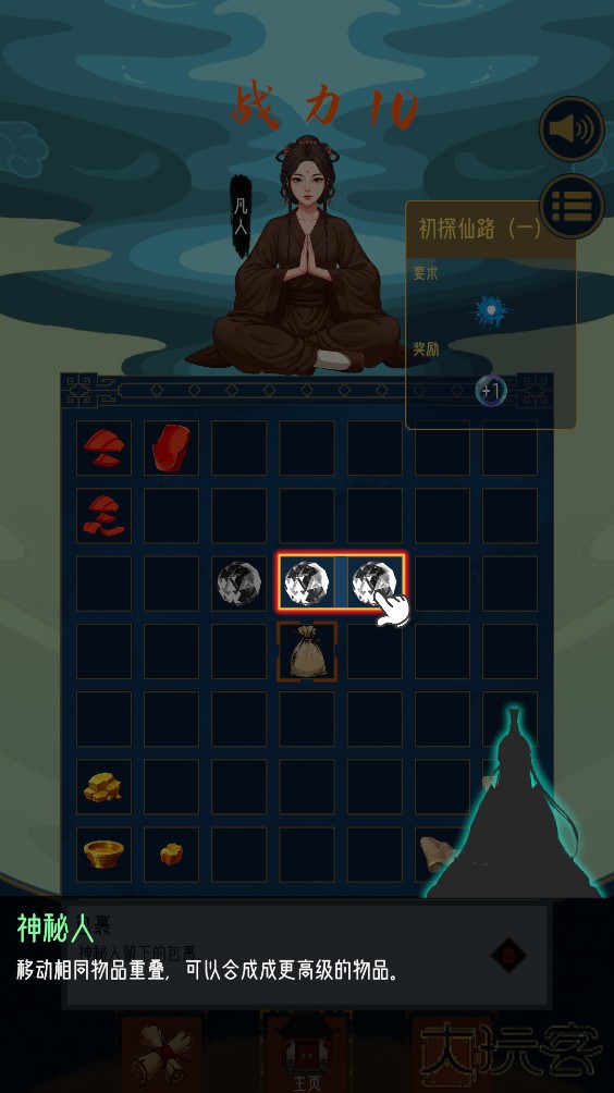 4.移动相同的物品折叠,可以合成更高级的物品。