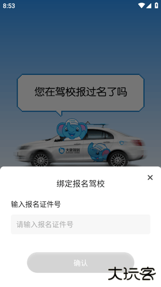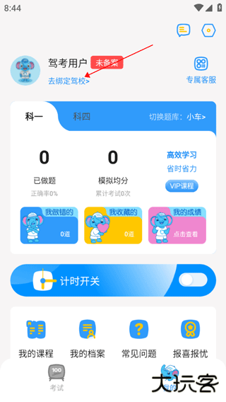 1、打开大象驾到App,切换到“我的”,点击用户头像旁的“去绑定驾校”。