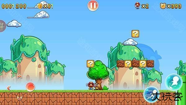 3、跳跃撞击游戏中的问号方块可以获得积分或者道具,蘑菇道具能让人物长大,鲜花可以获得射击能力。