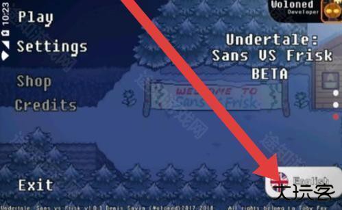 1、进入Undertale:Sans VS Frisk BETA游戏初始界面,点击【English】确认语言设置,开启游戏基础配置流程。