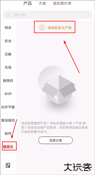 2、在【产品】页面内,先点击【自定义】--【添加自定义产品】;