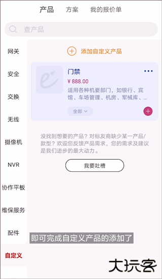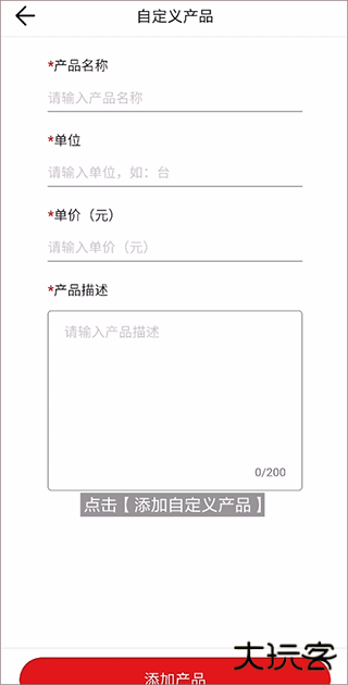 3、在【自定义产品】页面内,输入产品信息,点击【添加产品】即可完成添加;