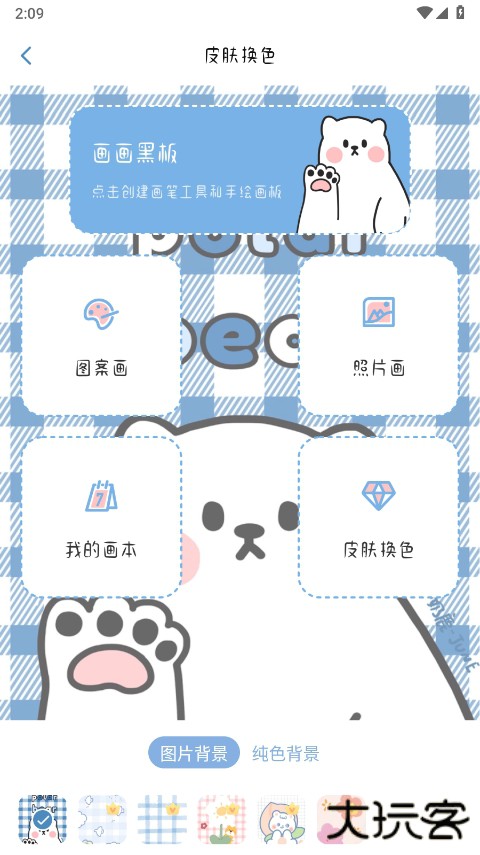 1、一键添加画画的背景色,可以选择纯色,也可选择渐变色。