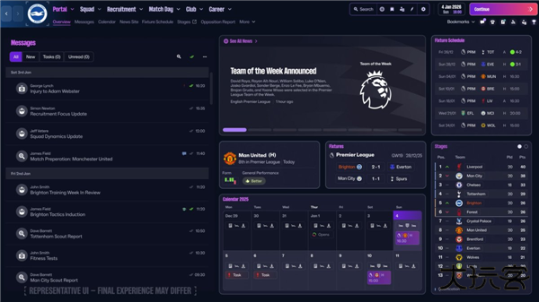 3.掌握职业生涯关键抉择——你对球队发展方向与个人执教生涯拥有更高自主权。可通过赛季末的合同谈判开启全新篇章,运用全新的租借机制与智能助理教练系统,更高效地培养年轻球员,构建属于你的足球王朝。