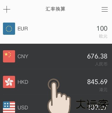 2、更换基准货币点击列表中的货币即可将其设为基准货币