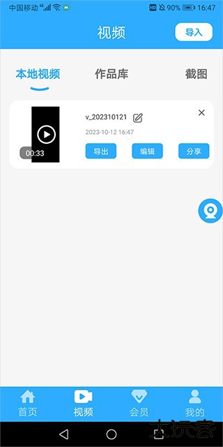 7、停止录屏后能够对视频进行导出、编辑、分享操作。