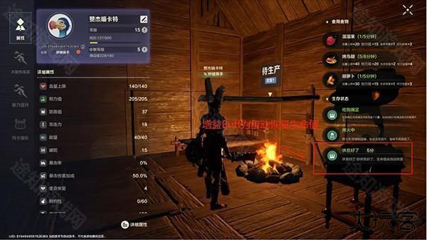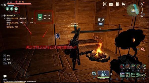 寒冷和潮湿状态则需要到篝火附近点燃篝火消除。下雨时,篝火需要在屋顶下方才能点燃。