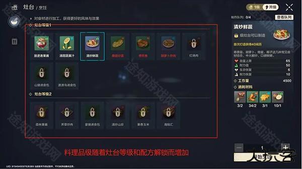 当角色使用三种不同的食材后就会获得吃饱喝足的增益状态,届时生命和耐力恢复以及伤害会得到提升。食用经过烹饪的料理能够维持更长的进食增益状态,不同品级的料理增益效果维持时长也会不同。