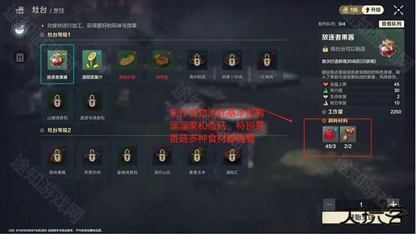 解锁了鱼竿后就可以带上饵料去钓鱼了,饵料蚯蚓可通过家园种植后的收获概率获得。鱼经过灶台的处理就可以加工成香煎鱼这道可食用的食材。