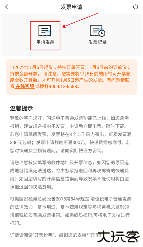 3、这是进到了发票申请页,我们点击【申请发票】进入。