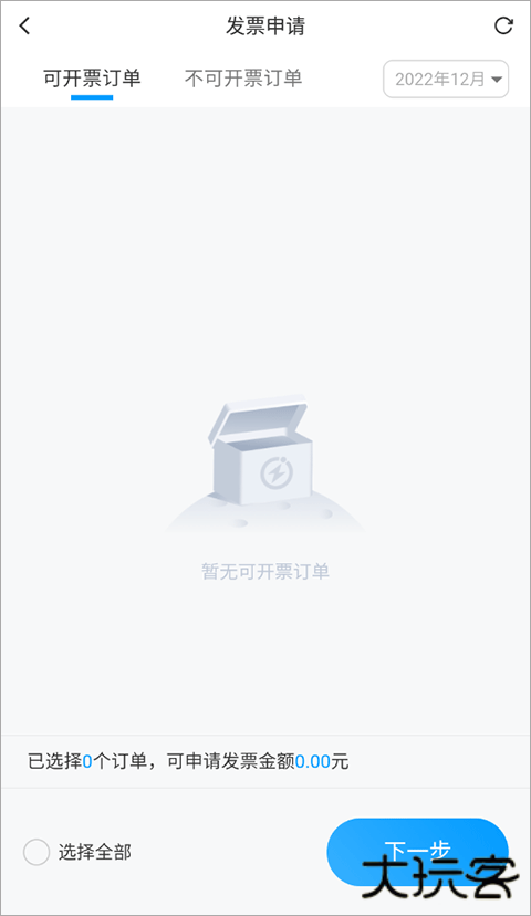 4、最后,选择你要开发票的订单,点击【下一步】输入税号信息后即可开发票。