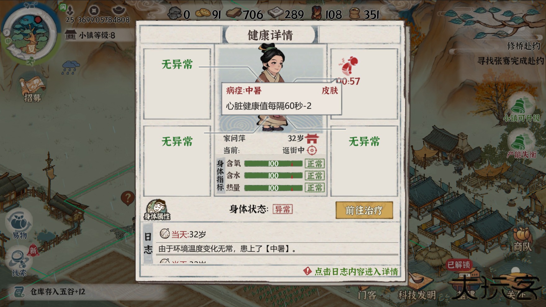 1.作为小镇的掌舵者,您将直面四季更迭带来的生存考验——寒冬需统筹供暖物资配给,酷夏要完善水利系统建设,每一个决策都关乎居民存亡。更需警惕丝路商队带来的异域疫病,通过建立三级医疗体系(医馆-药局-隔离区)来守护小镇健康防线。