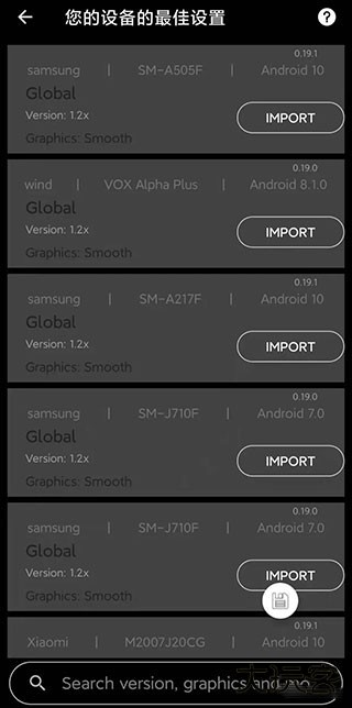 在普通设备上应用高端机型的图形设置(查找喜欢的设置并导入它),找到你认为合适的设置,点击import(导入)