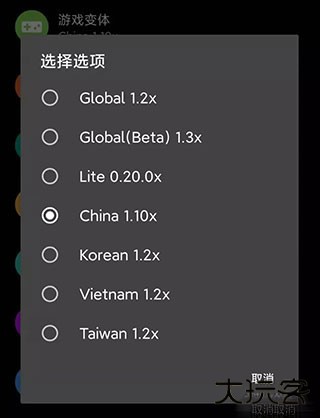 如果你要玩《和平精英》就要选择”China 1.10x",国际版的话就选"Global 1.2x"