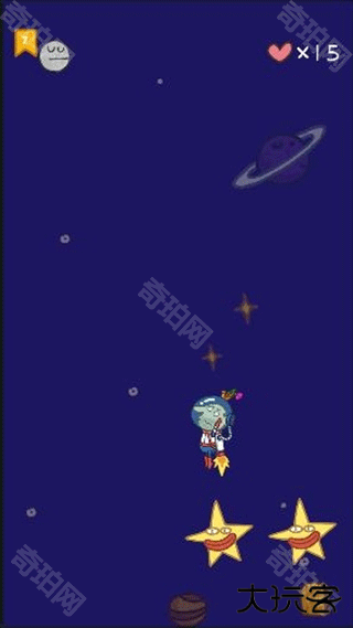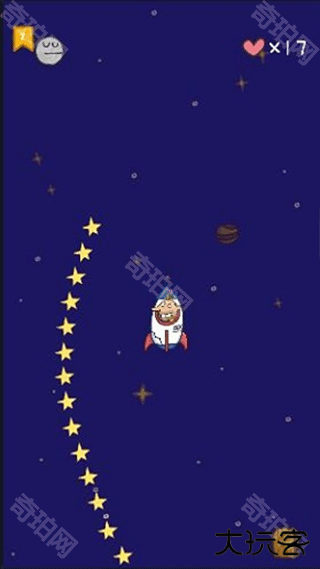 这个关卡需要我们一直按住屏幕即可,让火箭飞到太空,去寻找我们的狗狗。